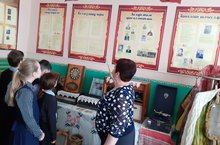 В ходе классного часа учащиеся 6 класса посетили школьный краеведческий музей. Учитель рассказал о жизнидеятельности сельского народа, о народных промыслах в годы cоздания колхозов и в годы Великой Отечественной Войны, о великих и знаменитых односельчанах. Отметил, что музей богат экспонатами 30-50 годов. Ученики рассматривали экспонаты, задавали интересующие им вопросы.