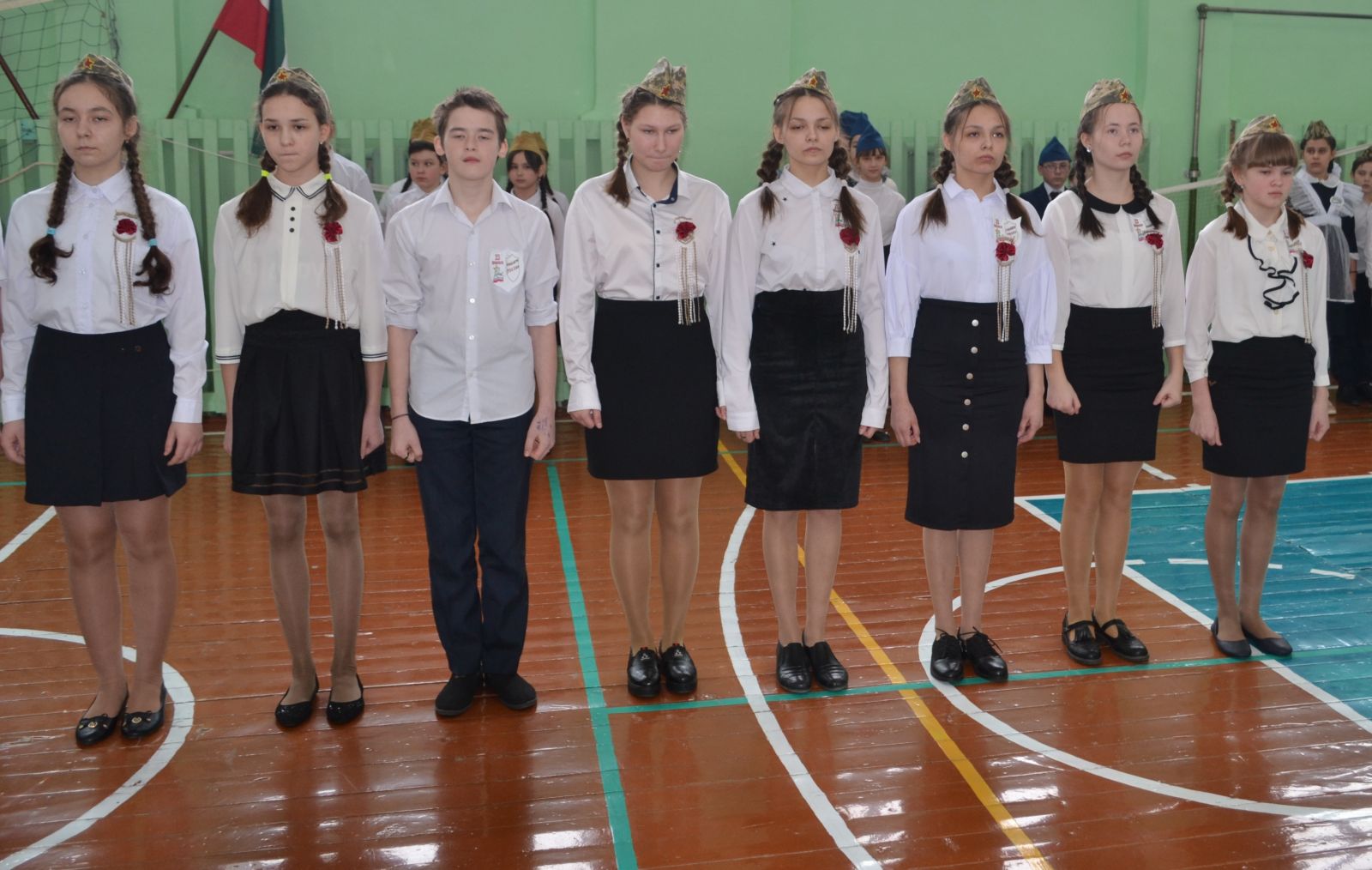 В рамках месяника гражданско-патриотического воспитания в школе прошел смотр строя и песни-2022./Гражданлык-патриотик тәрбия айлыгы кысаларында мәктәптә строй һәм җыр-2022 смотры узды.