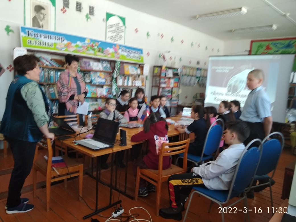 С целью патриотического воспитания обучающихся, в рамках месячника гражданско-патриотического воспитания 3 марта был проведен всероссийский урок истории с использованием направленных Министерством образования и науки РТ материалов./Укучыларны патриотик тәрбияләү максатыннан, 3 март көнне, гражданлык-патриотик тәрбия айлыгы кысаларында, ТР Мәгариф һәм фән министрлыгы тарафыннан җибәрелгән материаллар кулланып, Бөтенроссия тарих дәресе үткәрелде.