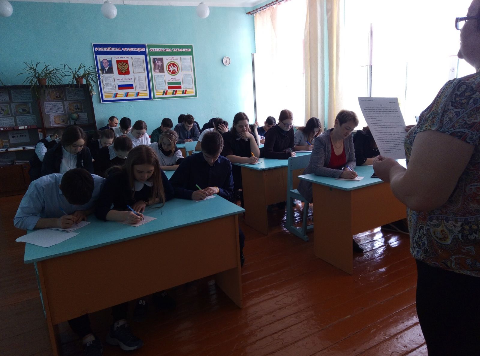 В школе прошел тотальный диктант по русскому языку./Мәктәптә рус теле буенча Тоталь диктант узды.