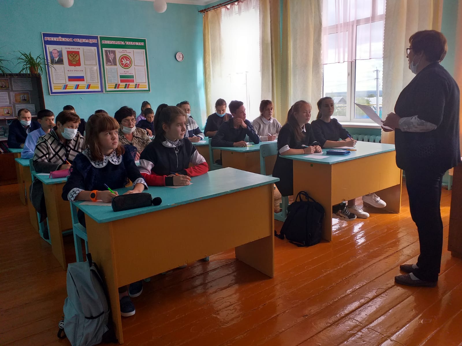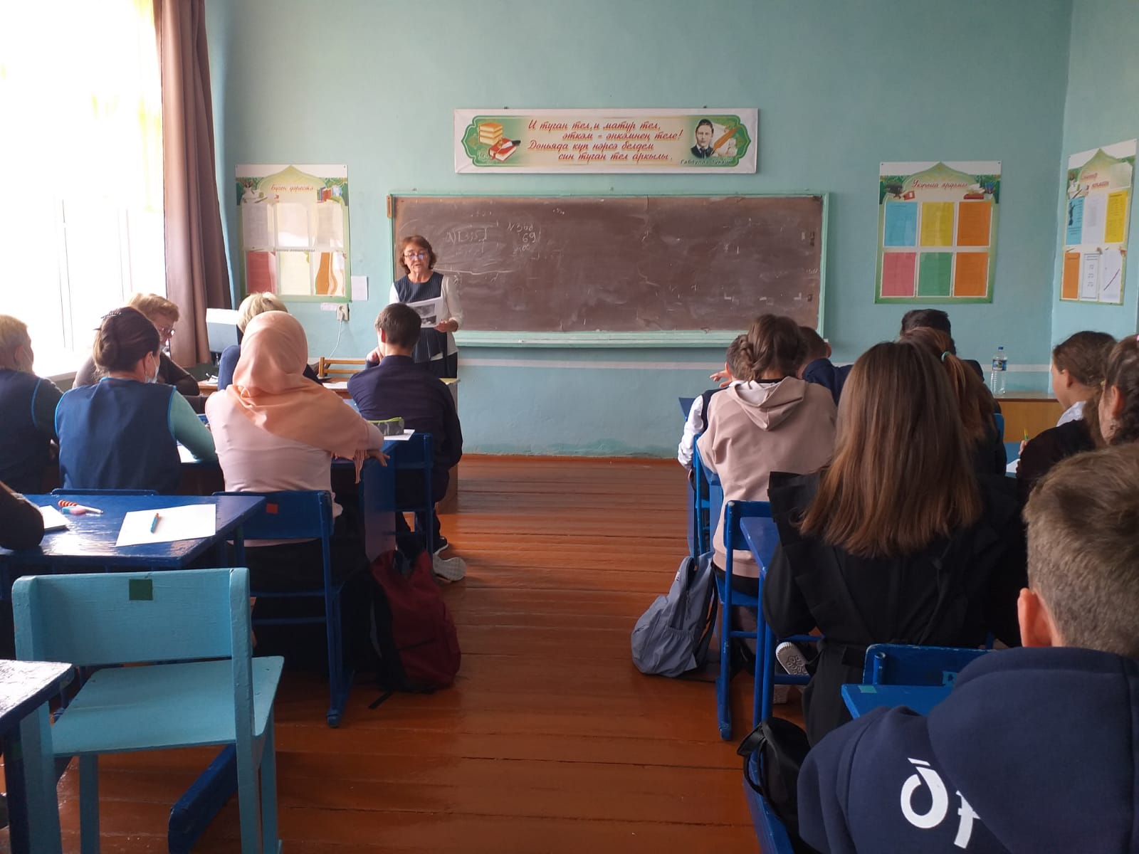 Сегодня в школе писали татарский диктант. В диктанте приняло участие в общей сложности 100 человек: учащиеся, сотрудники школы/Бүген мәктәптә татар диктанты яздылар. Диктантта барлыгы 100 кеше катнашты: укучылар, мәктәп хезмәткәрләре