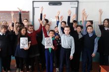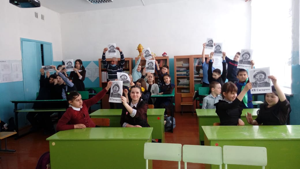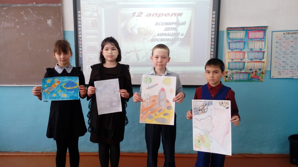 В школе проходит выставка рисунков, посвященная Гагарину. Принимают участие все классы: с 1 по 10./Мәктәптә Гагаринга багышланган рәсемнәр күргәзмәсе бара. Барлык сыйныфлар да катнаша: 1-10.