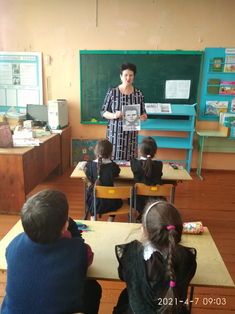В начальной школе работники сельской библиотеки совместно с учителями начальных классов провели День космоса./Башлангыч мәктәптә авыл китапханәсе хезмәткәрләре башлангыч сыйныф укытучылары белән берлектә Космос көне үткәрделәр.
