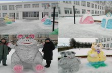 Педагоги совместно с техперсоналом сделали снежные фигуры.