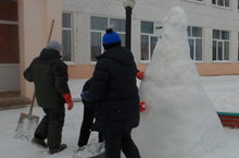 Сегодня около нашей школы вырос маленький снежный городок, созданный руками наших учителей и техработников.