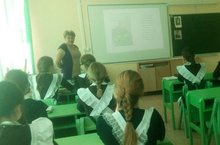 Ахметова А.А. проводит классный час, посвященный 190-летию Льва Николаевича Толстого