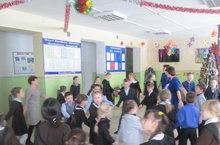 В 10 часов началось новогоднее представление,героями которого стали учащиеся 1-5 классов.Дети порадовали и себя и взрослых зрителей песнями,стишками,танцами,помогли Деду Морозу вернуть мешок с подарками, украденный злодеями из сказок.
