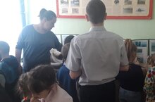 Сегодня воспитанники детского сада "Теремок" посетили музей нашей школы. Дети с увлечением слушали выступление экскурсовода Азата Шарафиева (уч. 7 класса). У них появилась возможность прикоснуться к событиям ВОВ