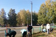 День посадки леса. Посажена живая изгородь детской площадки около дома культуры. Обучающиеся, члены школьного лесничества вместе с сотрудниками Красноборского участкового лесничества.