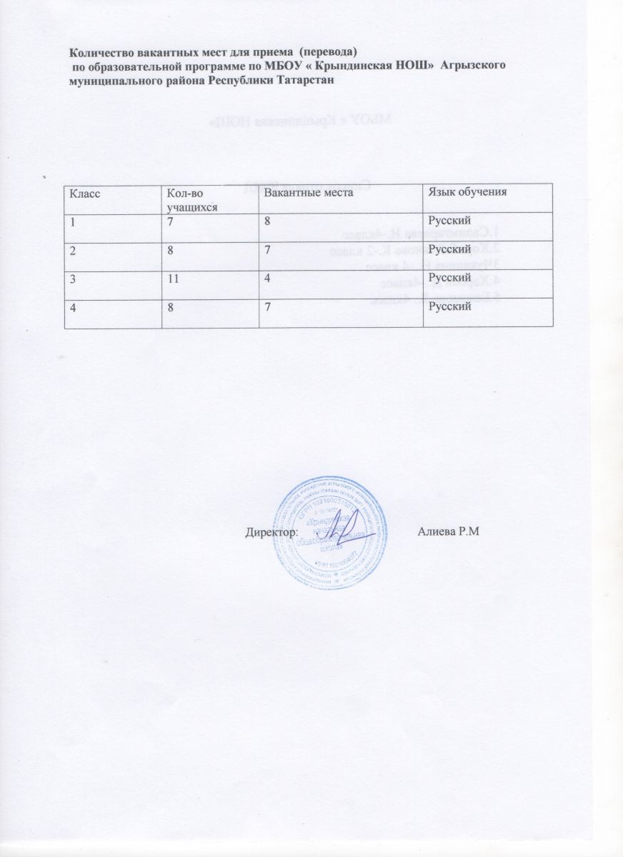 вакантные места для према( перевода ) по образовательной программе на 2016-17 уч.год