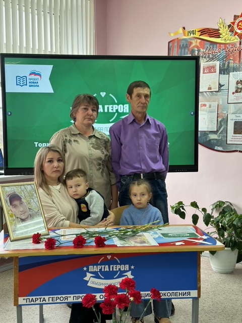 Сегодня, 23 октября 2024 года в нашей школе состоялось торжественное открытие «Парты Героя» участнику СВО Васильеву Виктору Эдуардовичу, погибшему в ходе исполнения служебного долга на Украине.