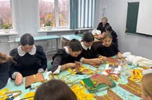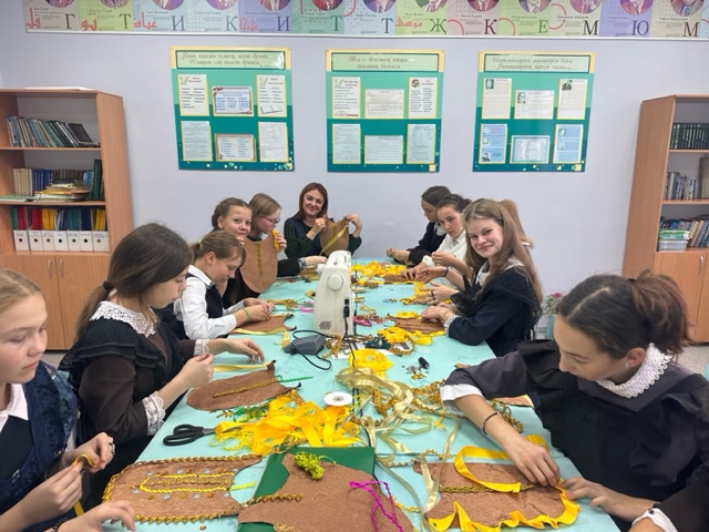 Процесс, изготовления татарского национального нагрудника - изу, был очень интересным и увлекательным, помимо практической части , девочки узнали историю возникновения украшении: кто его носил, как его украшали и что оно обозначало.