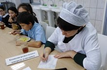 Член комиссии по контролю за питанием Садыкова Ф. Н. посетила школьную столовую Кучуковской СОШ. Она посмотрела меню, пробовала еду, составила акт проверки.