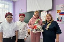 Сегодня Юнармейцы школы поздравили маму выпускника школы, участника Специальной Военной Операции Хайтбаева Форуха.