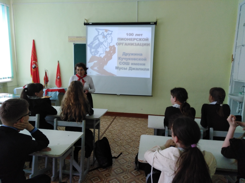 В районном дворце культуры г.Агрыз прошло праздничное мероприятие, приуроченное к 100-летнему юбилею Пионерии, в котором приняли участие ветераны пионерии Кучуковской СОШ Камалиева Г.Х, Шайхутдинова А.Б.,Касимова В.Н. и учащиеся. Наша ученица 9 класса Фаттахова Ландыш награждена благодарственным письмом за активное участие в жизни детской организации. Спасибо Ландыш за активную жизненную позицию в деятельности школы. Для посетителей праздничного концерта в фойе РДК работала уникальная выставка с музейными экспонатами.