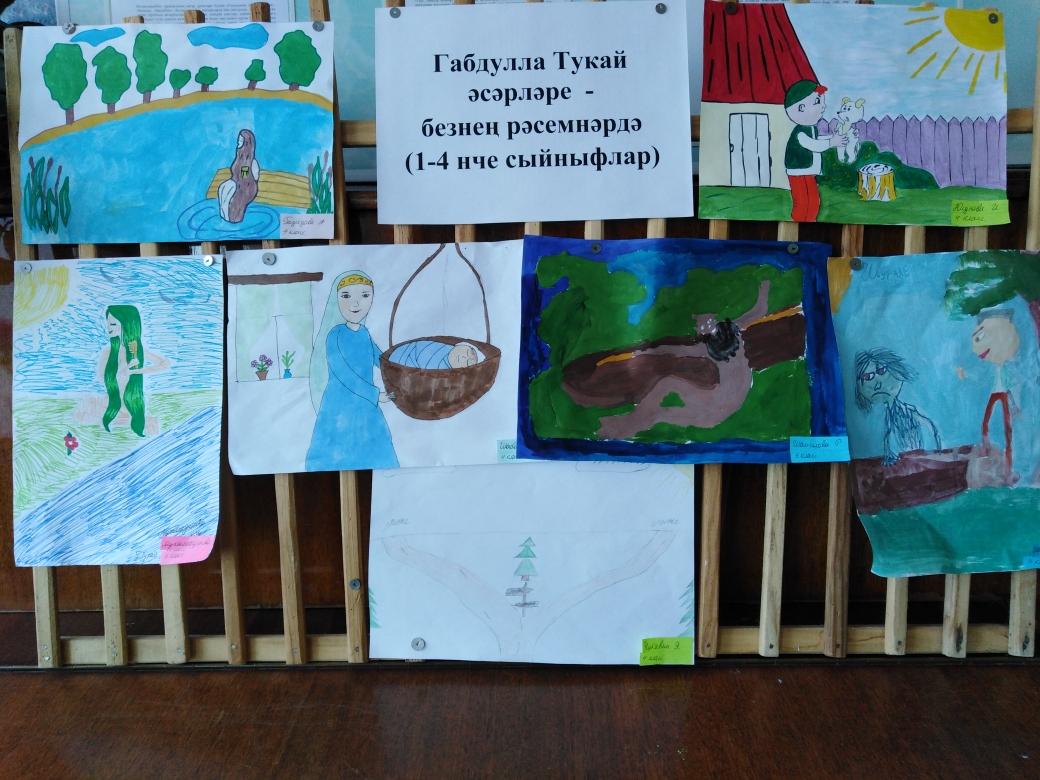 Мәктәптә Г.Тукайның 135 еллыгына багышланган чаралар дәвам итә. Укучылар Г.Тукай әсәрләренә рәсемнәр ясадылар.