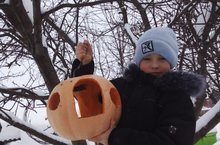 Ученик 3 класса смастерил оригинальную кормушку из тыквы. Молодец Юра!