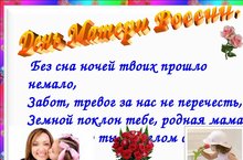 Традиционным стал праздник, который мы отмечаем каждый год в последнее воскресение ноября. И это замечательно: сколько бы хороших, добрых слов мы не говорили нашим мамам, сколько бы поводов для этого не придумали, лишними они не будут.Учащиеся 4 класса подготовили компьютерные презентации "Мой лучший друг-мама". Рассказали о своих мамах.