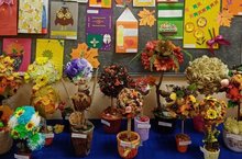 Яркие осенние краски на выставке "Осенний калейдоскоп", учащихся художественного отделения ИЗО.