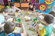 14 апрельдә мәктәпкәчә яшьтәге тәрбияләнүчеләр белән тәрбияче Халтурина Елена"Минем яраткан кояшым" темасына сәнгать-эстетик үсеш (рәсем) буенча дәрес үткәрде.ФГОС программасы кысаларында балалар түгәрәк ясауларын дәвам иттеләр, чук белән рәсем ясау буенча шөгыльләнгәннәр, күнегүләр ясаганнар, табигать күренешләре (кояш, зәңгәр күк, үлән) турында күзаллауларын киңәйткәннәр.