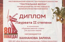 Лауреат II степени в Республиканском конкурсе театрального искусства «Театральная волна», посвященном 80-летию Победы в Великой Отечественной войне 03.03.2025