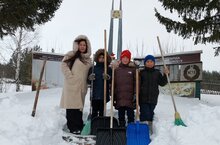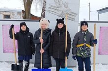 Юнармейцы Дома Юнармии при МБУ ДО ДДТ "Радуга талантов" на базе МБОУ Кичкетанская СОШ, под руководством Шакировой Г.К., расчистили от снега территорию монумента павшим воинам-землякам в Великой Отечественной войне 16.01.2025