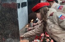 Юнармейцы зажгли свечи, возложили цветы на мемориале в память о погибших в «Крокус сити Холле» 28.03.2024