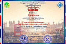 Поздравляем учащихся объединения "Увлекательный английский-1" и педагога дополнительного образования МБУ ДО ДДТ "Радуга талантов" Корневу Ирину Георгиевну с дипломом II степени V Международного конкурса "I speak English" . Желаем творческих успехов!