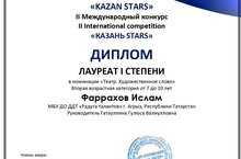 Фаррахов Ислам лауреат 1 степени в Международном конкурсе «Казань stars". 29.05.2022