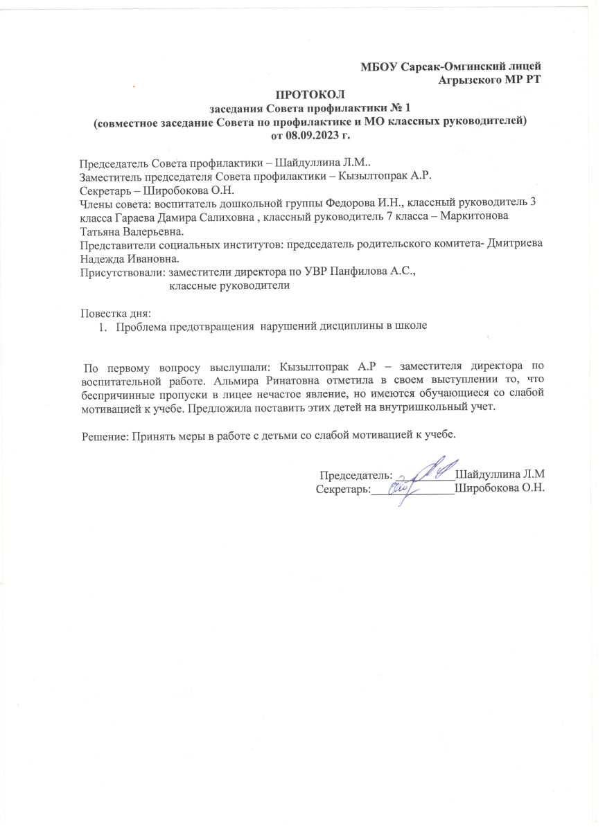 Протоколы заседаний Совета профилактики за 2023-2024 учебный год