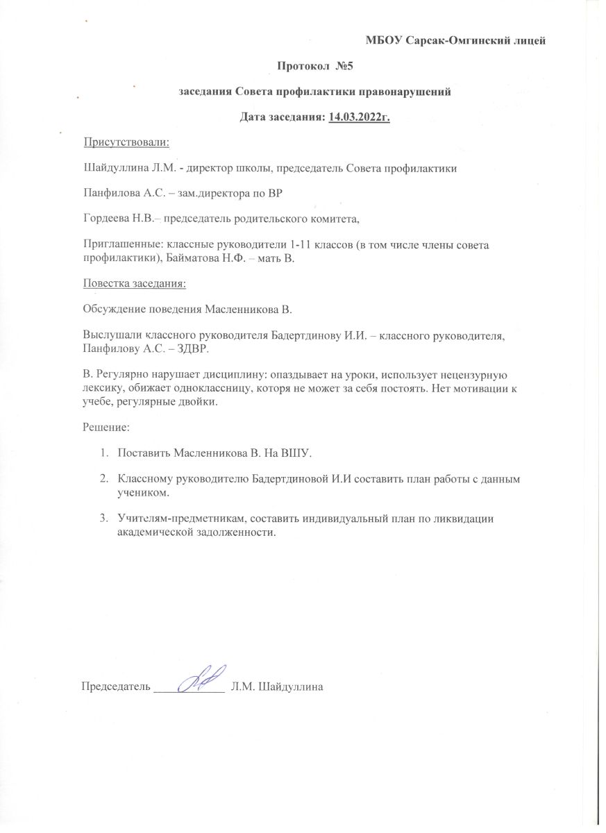 Протоколы заседаний совета профилактики за 2022-2023 уч. год