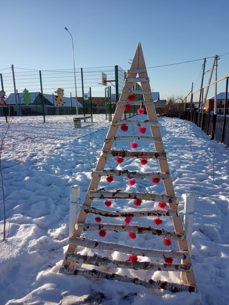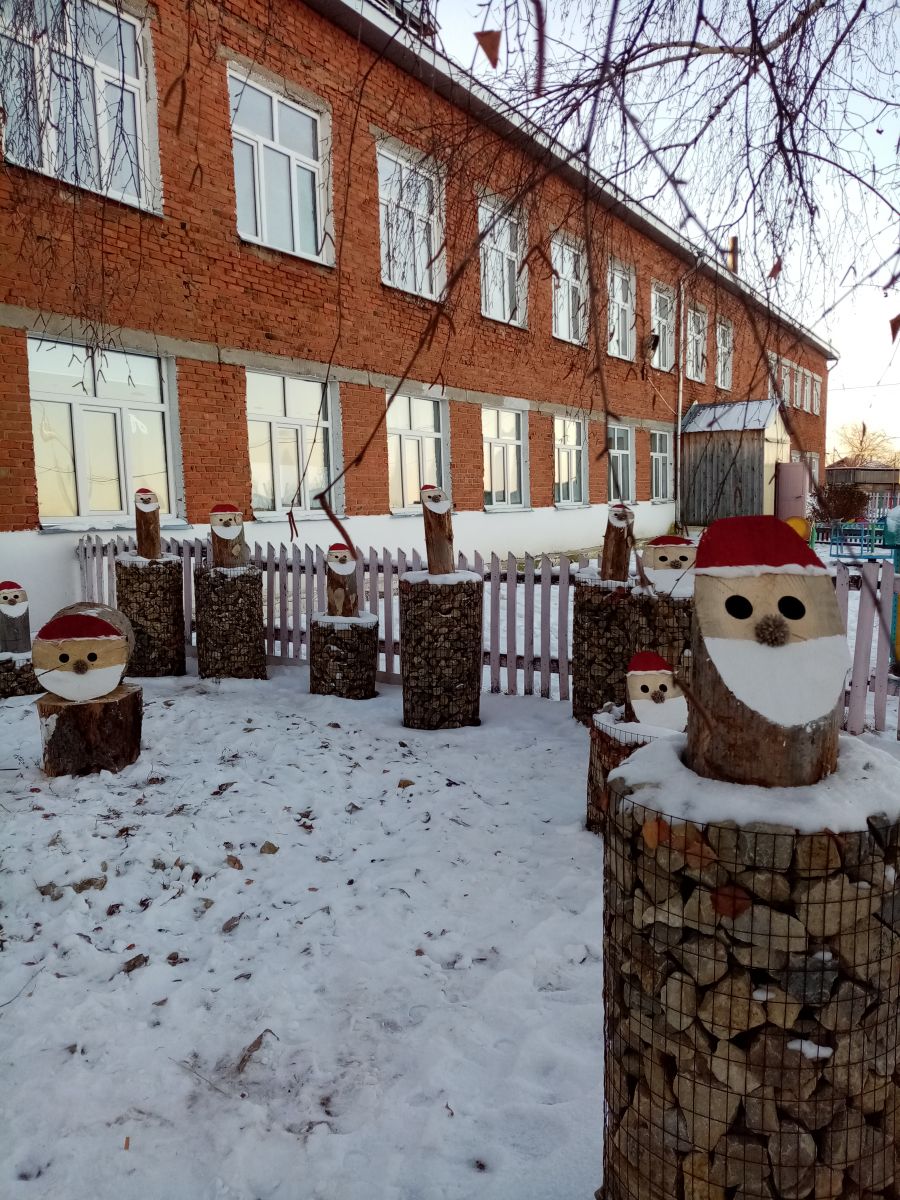 Яңа ел да якынлашып килә. Көтеп алынган бәйрәмгә әзерлек күптән башланды. Балалар Яңа ел уенчыклары,кәнфитләр ясыйлар, кар бөртекләре кисәләр, сыйныф бүлмәләрен бизиләр. Бу көннәрдә һәркем мәктәп алды территориясен бизәү белән мәшгуль. Кар юк диеп тормадык, җаен таптык. Капчыклардан Кар бабайлар ясадык. Киселгән бүрәнәләрдән күңелле гномнар барлыкка килде. Ак агач ботакларына җептән ясалган бик матур Кызылтүшләр урнаштылар. Мәйдан уртасына чыршы куеп, аны балалар ясаган төрле төсле кәнфитләр белән бизәдек. Әкият геройлары да урын алды. Киләсе елның символы булган Сыерга урын түрдән, әлбәттә. Үсеш ноктасы аллеясында үзенчәлекле тагын бер Чыршы пәйда булды. Бу "Яшь столяр" түгәрәгенә йөрүче балаларның тәүге эше. Мәктәп алды бәйрәм төсе алды.