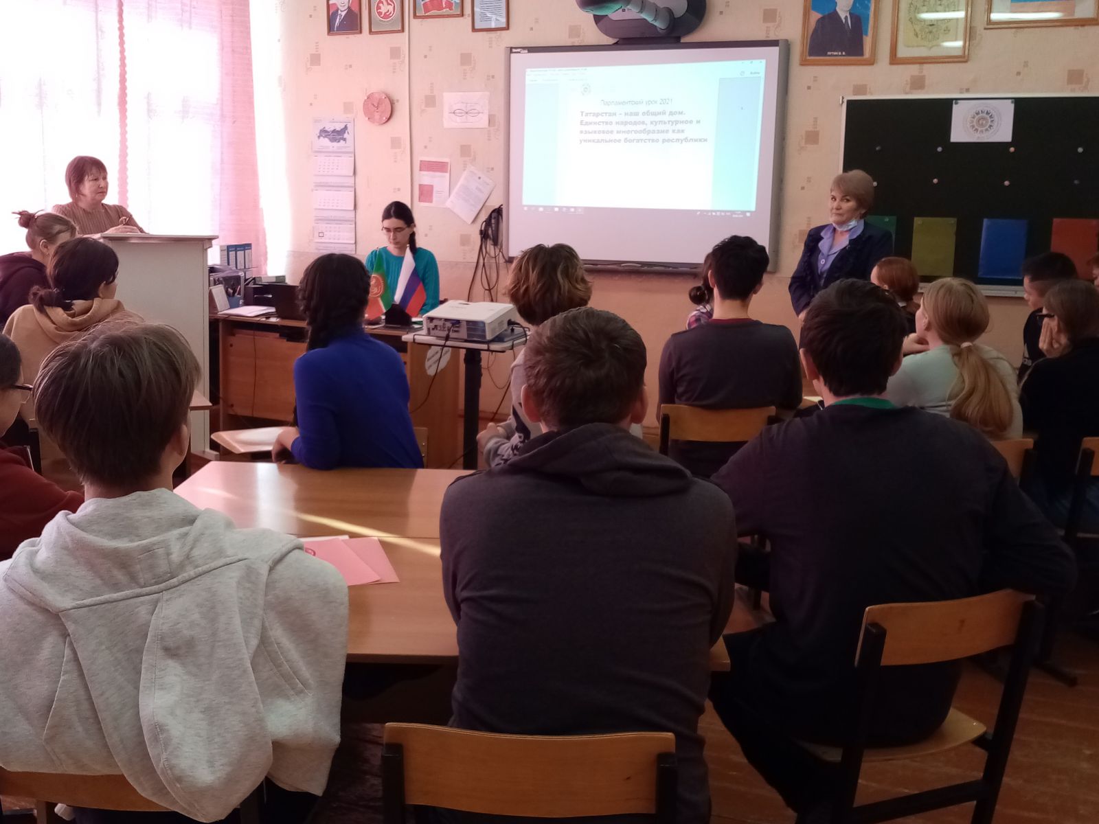 Опубликовано: 20.02.2021Сегодня в лицее прошел Парламентский урок с приглашением руководителя Исполнительного комитета Сарсак-Омгинского сельского поселения Агрызского МР РТ, депутата Николаевой Т. С. Тамара Сергеевна рассказала о многонациональности поселения, сколько сел и деревень входят в состав сельского поселения, призывала детей отучиться и возвратится в родное село. Парламентский урок был приурочен Году родных языков и народного единства. Далее урок продолжился в форме интеллектуальной игры, где дети должны были ответить не только на вопросы блиц-опроса, но и на каверзные видеовопросы учителей-предметников. Видеовопросы задали следующие преподаватели: Олхаева Н. И., Маркитонова Т. В., Васильева Г. А., Зарипова Ф. К., Шайдуллина Л.М., Терентьева Л. М., Тимофеева Р. В., Панфилова А. С., Бадертдинова И. И., Маркитонова Л. Л., Широбокова О.Н., Гаврилова Е. И., Кызылтопрак А. Р., Иванова Н.Н., Байкова Т. В., депутат Бимского сельского поселения учитель русского языка и литературы Корнева Оксана Валерьевна. Вопросы были из разных областей науки, хотя и связанные с тематикой Года родных языков и народного единства. Ребята достойно выдержали интеллектуальный бой и ответили на вопросы. Молодцы! Спасибо за подготовку и проведение педагогическому коллективу!