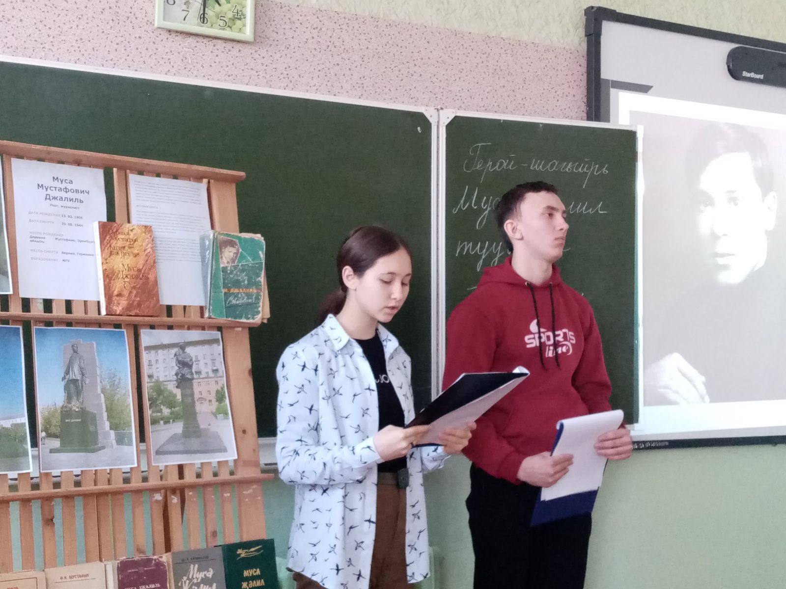 Опубликовано: 25.02.2021Лицейда каһарман-шагыйрь Муса Җәлилнең тууына 115 ел тулу уңаеннан әзерләнгән чара узды (кичә салкыннар булу сәбәпле кичектерелеп килде). Әдәби-музыкаль чарада 5-10 нчы сыйныф укучыларының татар һәм рус төркемнәрендә укучы балалар катнашты. Алып баручы укучыларыбыз Сабирова Алсу һәм Касыймов Руслан әдипнең тормыш юлы һәм иҗаты белән таныштырдылар. Кичә шагыйрьнең матур шигырьләре белән үрелеп барды. Аларны да укучылар башкарды. Саидә Мөхәммәтҗанованың "Җырларым" әсәренә төшерелгән клибын балалар бик яратып кабул иттеләр. Чара барышында күрсәтелгән презентациядә бик бай кызыклы мәгълүмат тупланган иде. Туган телләр һәм халыклар бердәмлеге елы уңаеннан уткәрелгән әлеге әдәби-музыкаль кичәне татар теле һәм әдәбияты укытучылары Сабирова Л. Г., Шәйдуллина Л. М., Терентьева Л. М. әзерләде.