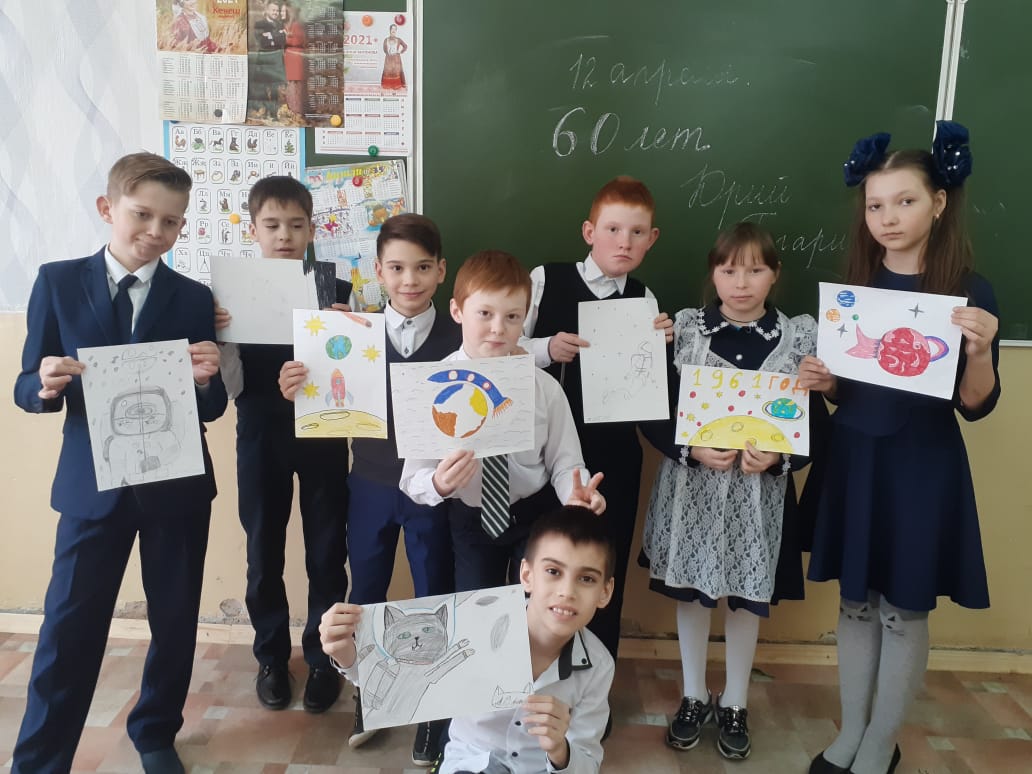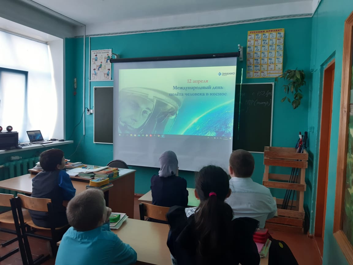 Педагог-библиотекарь Утехина С. А. в школьной библиотеке оформила выставку книг по теме. Педагог-организатор ОБЖ Гимазов Э. Р. для 5 класса организовал просмотр видеофильма о полете человека в космос "Космонавтика 2021 года". Педагог-организатор Иванова Н. Н. провела акцию "Я_Гагарин".