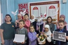 Шигырь белән танышу, геройларыбызга куелган такта янында әңгәмә, ветераннарыбыз хөрмэтенә чәчәклэр кую. -