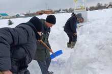Юнармейцы МБОУ Салаушская СОШ под руководством Ясавиевой Э. Д. расчистили от снега территорию монумента павшим воинам-землякам.