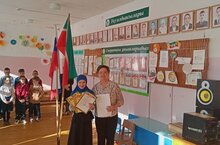 Каждый понедельник традиционно начинается с линейки, с выносом флагов и исполнением гимнов РФ и РТ.