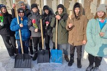 21 февраля юнармейцы вместе с руководителем Ясавиевой Э. Д. приняли участие в акции " Вахта памяти " по очистке от снега памятных мест