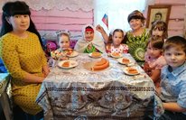 Воспитанники детского сада со своей воспитательницей Раимовой Сюмбель Ильфаровной с большим желанием поучавствовали во всероссийской акции "Испеки пирог и скажи спасибо",приуроченной празднованию Дня России. Будущие первоклассники пришли в гости к Касимовой Альфине Мирсаяповне и подарили пирог собственной выпечки в знак благодарности за её многолетний труд и сказали спасибо. На пироге они разместили маленький флажок триколор.