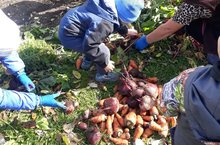 Сегодня ребята убирали урожай со своего опытного участка. Если весной они садили семена, летом поливали, а осенью собрали урожай. В течении всего времени ребята вели наблюдения за овощами.