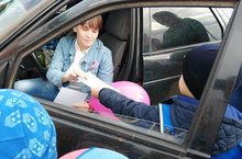 Воспитанники задавали вопросы родителям по ПДД, вручили им памятки и воздушный шар, как символ детской жизни.