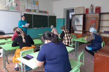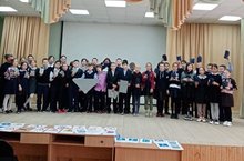 Мәктәптә Дөньякүләм “Татарча диктант” акциясен оештыручылар.
