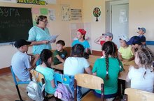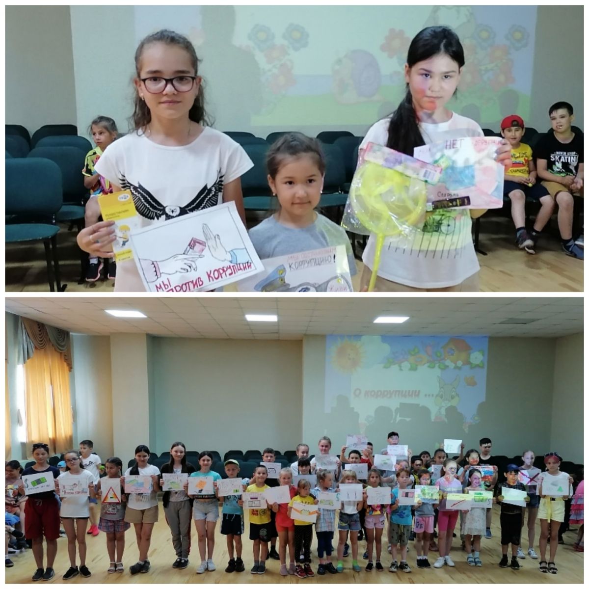 Завершился очередной лагерный день. Сегодня в гостях у нас побывали представители Форпост. Они провели с детьми беседу на тему "Коррупция" и поиграли с детьми в игры. Был устроен конкурс рисунков на эту же тему. По результатам оценивания лучшими оказались рисунки Ипоевой Дарины, Ганиевой Гузель и Хазеевой Малики/ Также мы посетили сельскую библиотеку, где ребятам показали богатство библиотечного фонда и музей. После обеда отряды посетили кружки. На интеллектуальном кружке ребята играли в игру "В мире слов", "Веришь - не веришь", "Забавные превращения", "Живой кроссворд", заполняли филворды и провели блиц-викторину. На кружке "Умелые ручки" смастерили в технике оригами прыгающую лягушку. На кружке "Кызыклы татар теле" ребят познакомили с особенностями татарского народа, их языка и песен. Были нарисованы татарские головные уборы, разучена песня "Кәрия-Зәкәрия"