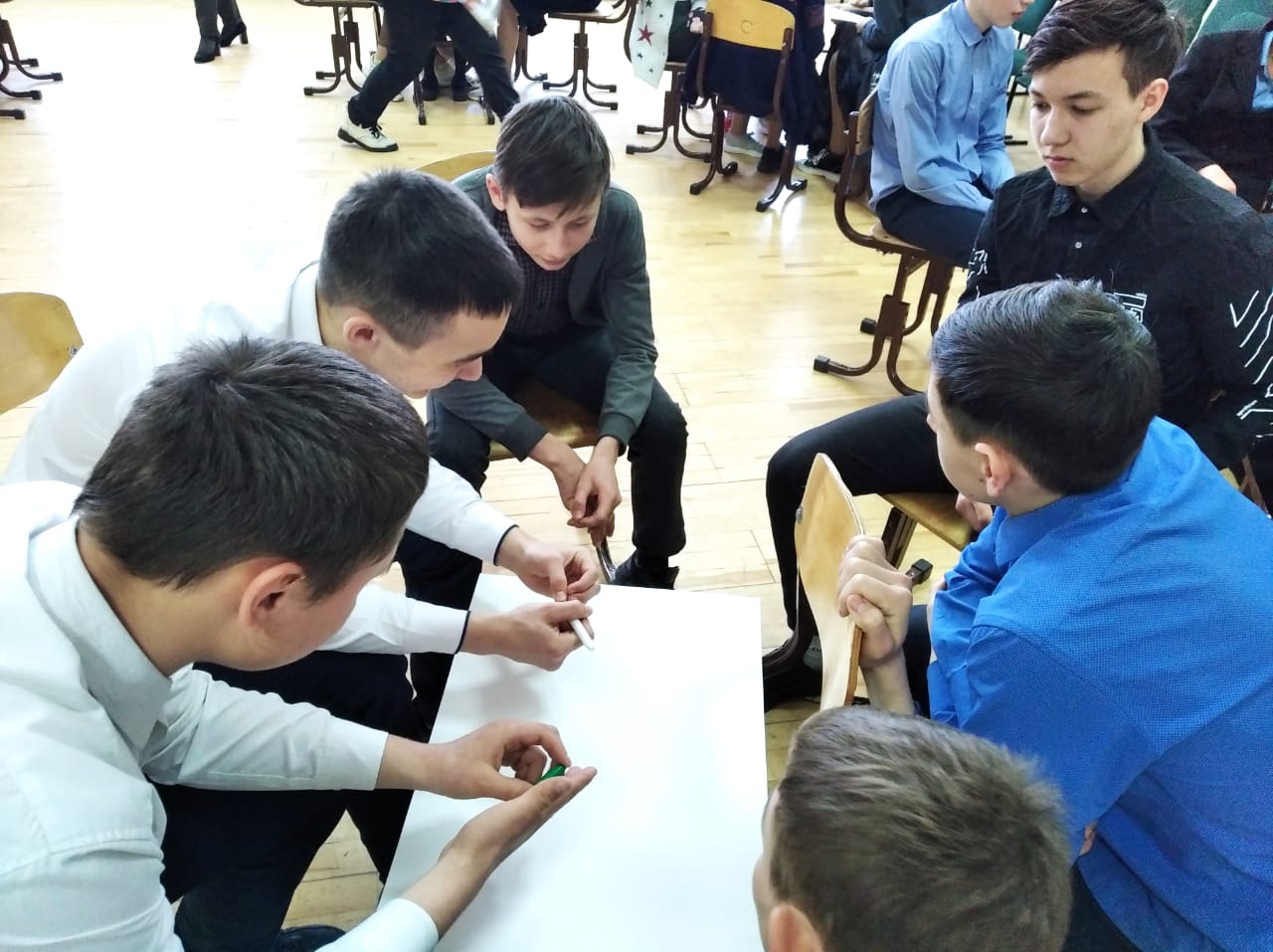 Укытучы Муллахмәтова Наилә Наил кызы җитәкчелегендә Менделеевскида инглиз теле буенча олимпиадада катнашучылар.