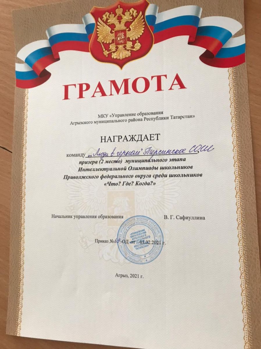 Сегодня на базе СОШ № 2 г. Агрыз состоялся муниципальный этап Интеллектуальной олимпиады Приволжского Федерального округа среди школьников "Что? Где? Когда?". Наша команда "Люди в черном" заняла второе место. Поздравляем их с победой и желаем дальнейших успехов.