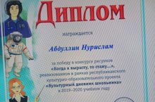 4 нче сыйныф укучысы Абдуллин Нурислам (җитәкчесе Ипоева А.С.) "Алга - үткәнгә-2020" республика конкурсында, "Минем ачышым" номинациясендә катнашып, 3 нче урын алды. Аны җиңүе белән котлыйбыз һәм киләчәктә дә иҗади уңышлар телибез.
