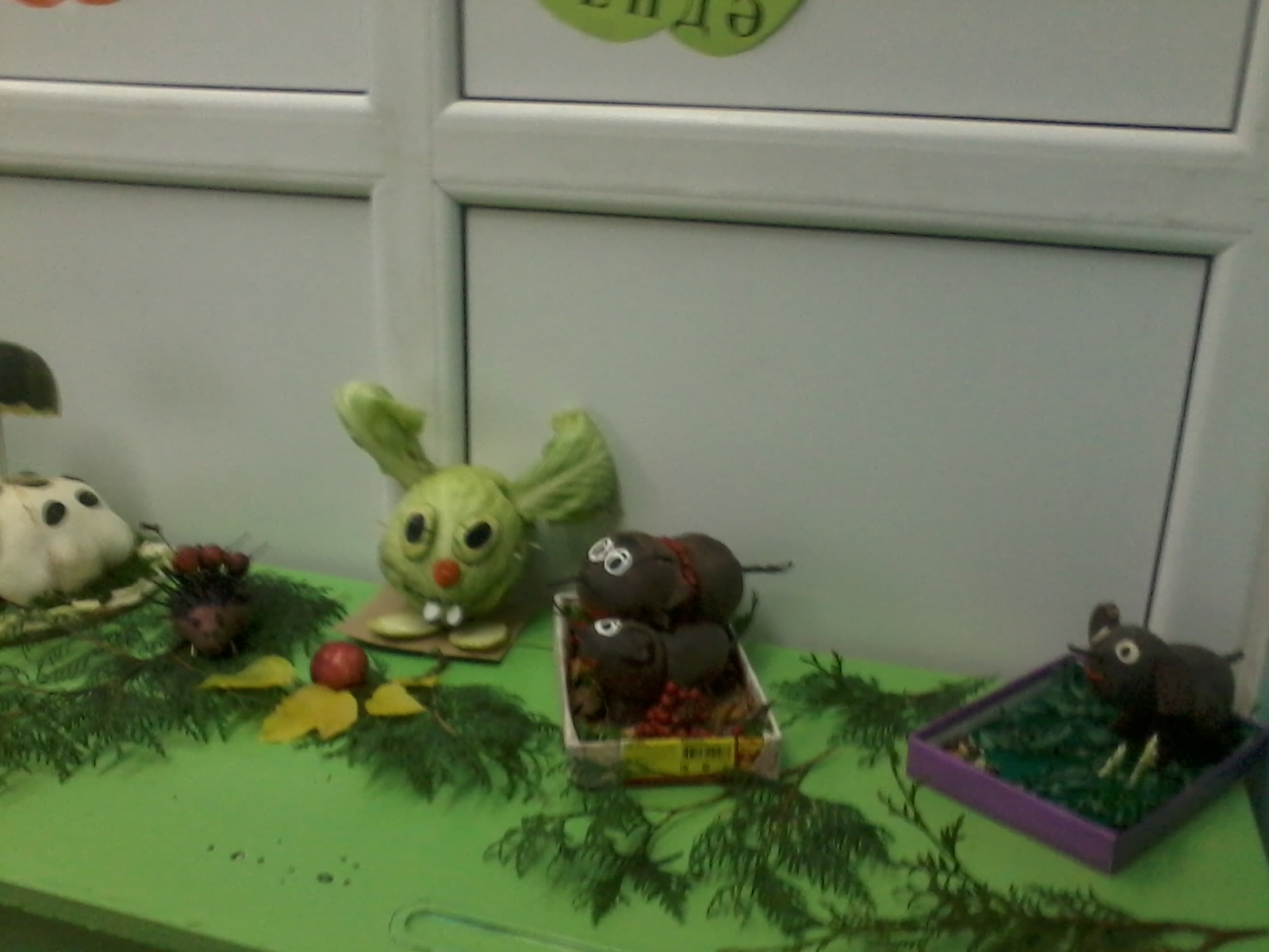 В актовом зале была организована выставка поделок на тему "Дары осени". Учащиеся начальных классов выполнили свои поделки из различных природных материалов. Поразила фантазия детей и умение сделать из самых обыкновенных вещей такие красивые изделия. Выполнение таких поделок способствовало не только развитию творческих способностей и фантазии, но и все больше сплотила детей и родителей в общем совместном деле.