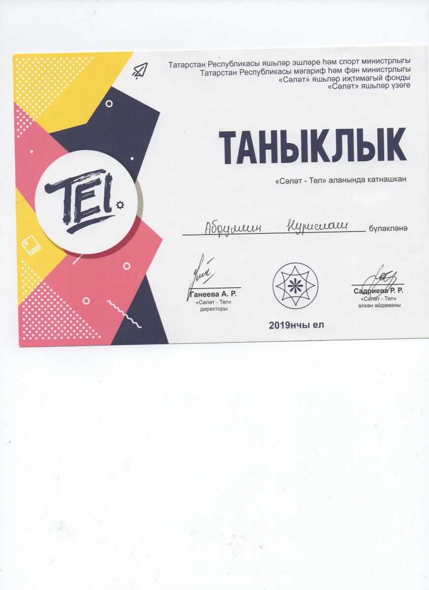 Безнең укучыбыз Абдуллин Нурислам "Сәләт" лагеренда яшәп, онытылмаслык хәтирәләр, дуслык мизгелләре һәм шатлыклы фикерләр алып кайтты. Шуның өстенә бүләкләр һәм таныклык иясе булды.