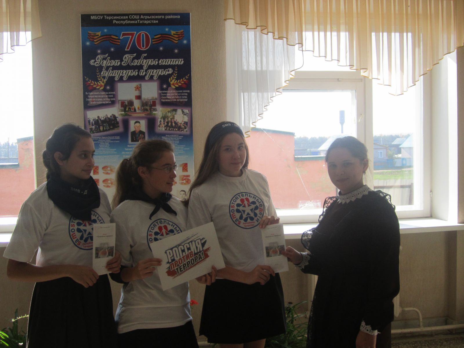 15.09.2016г. члены отряда «Новая волна» республиканского проекта «Самостоятельные дети» организовали акцию «Вместе против террора». Основной целью мероприятия является привлечение внимания к проблемам современного мира и главной угрозе человечества – терроризму. Терроризм относится к числу самых опасных и трудно прогнозируемых явлений современности, он приобретает всё более разнообразные формы и угрожающие масштабы, сеет страх и формирует чувство грозной опасности в большей степени, чем другие формы насилия.